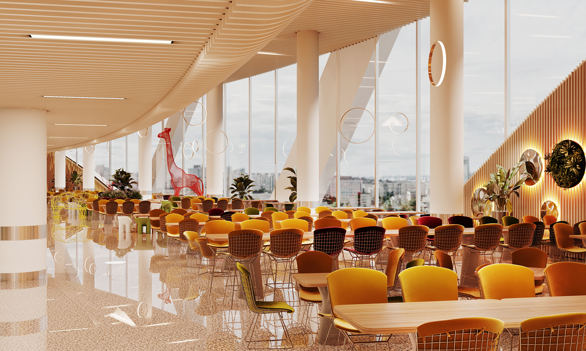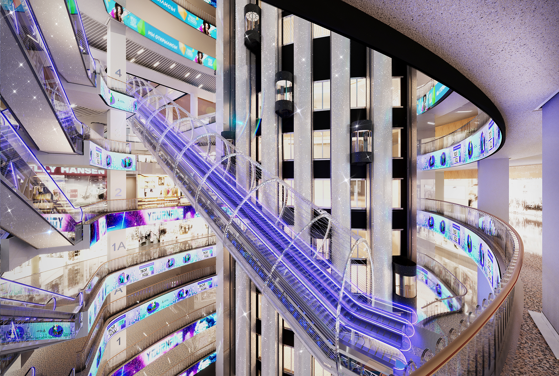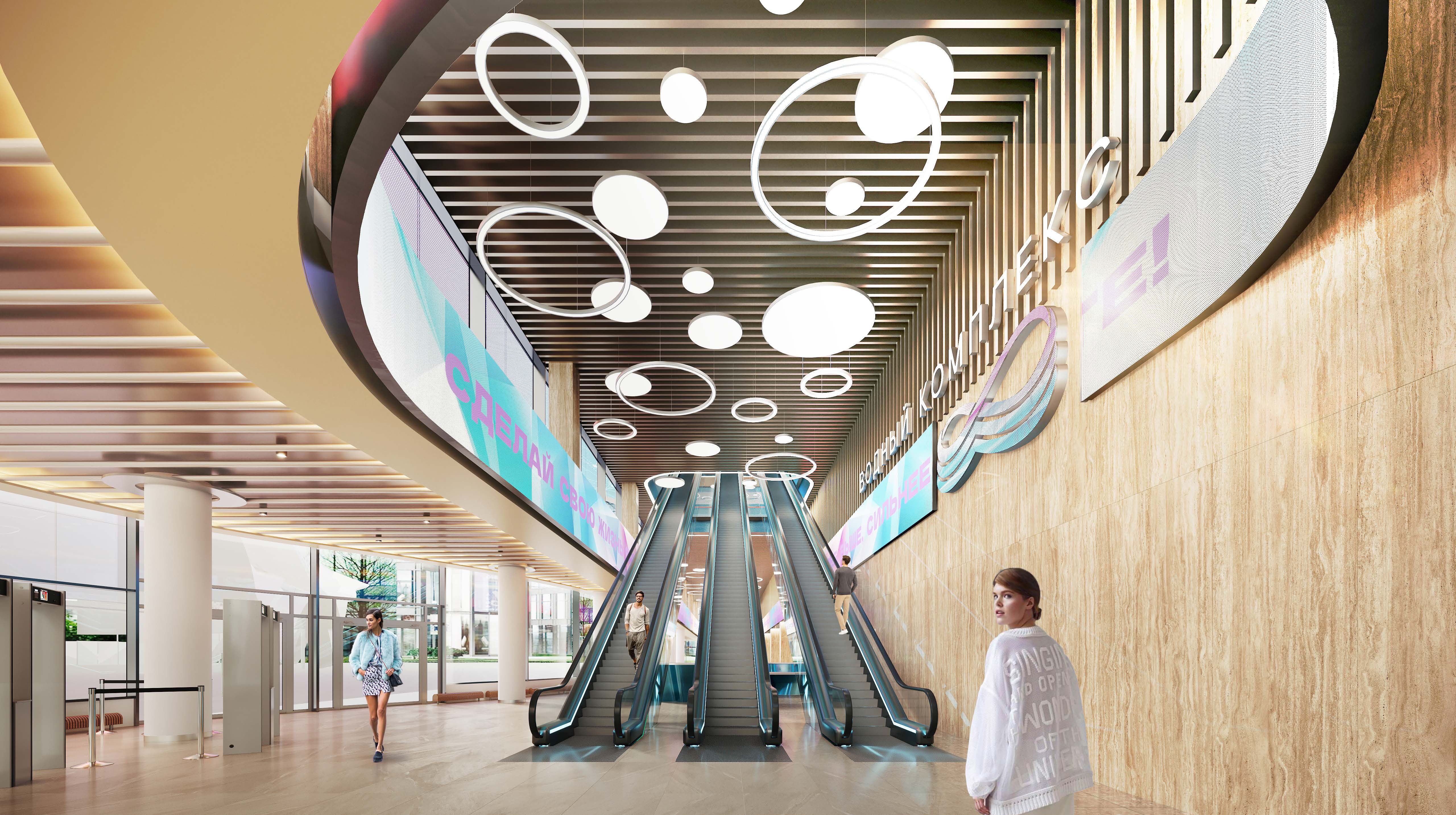 Night view of the main entrance from Olimpiyskiy Prospekt