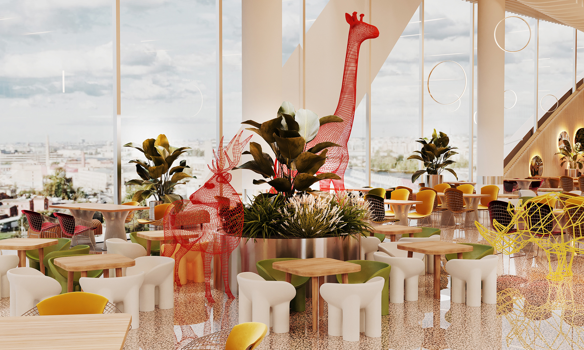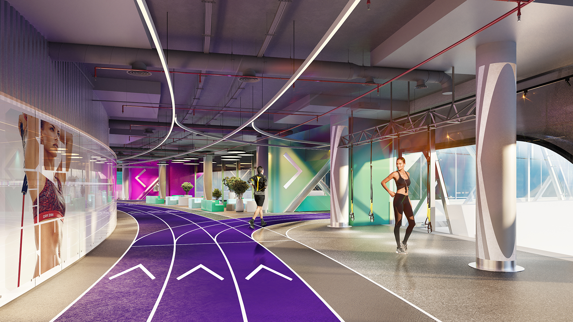 Bird's-eye night view from Olimpiyskiy Prospekt