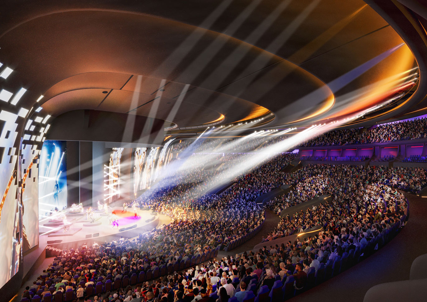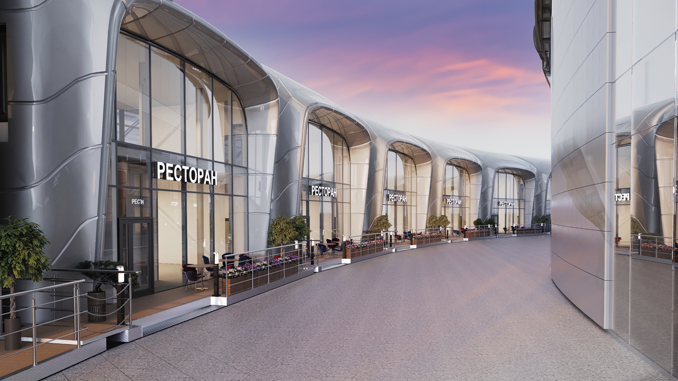Night view of the main entrance from Olimpiyskiy Prospekt
