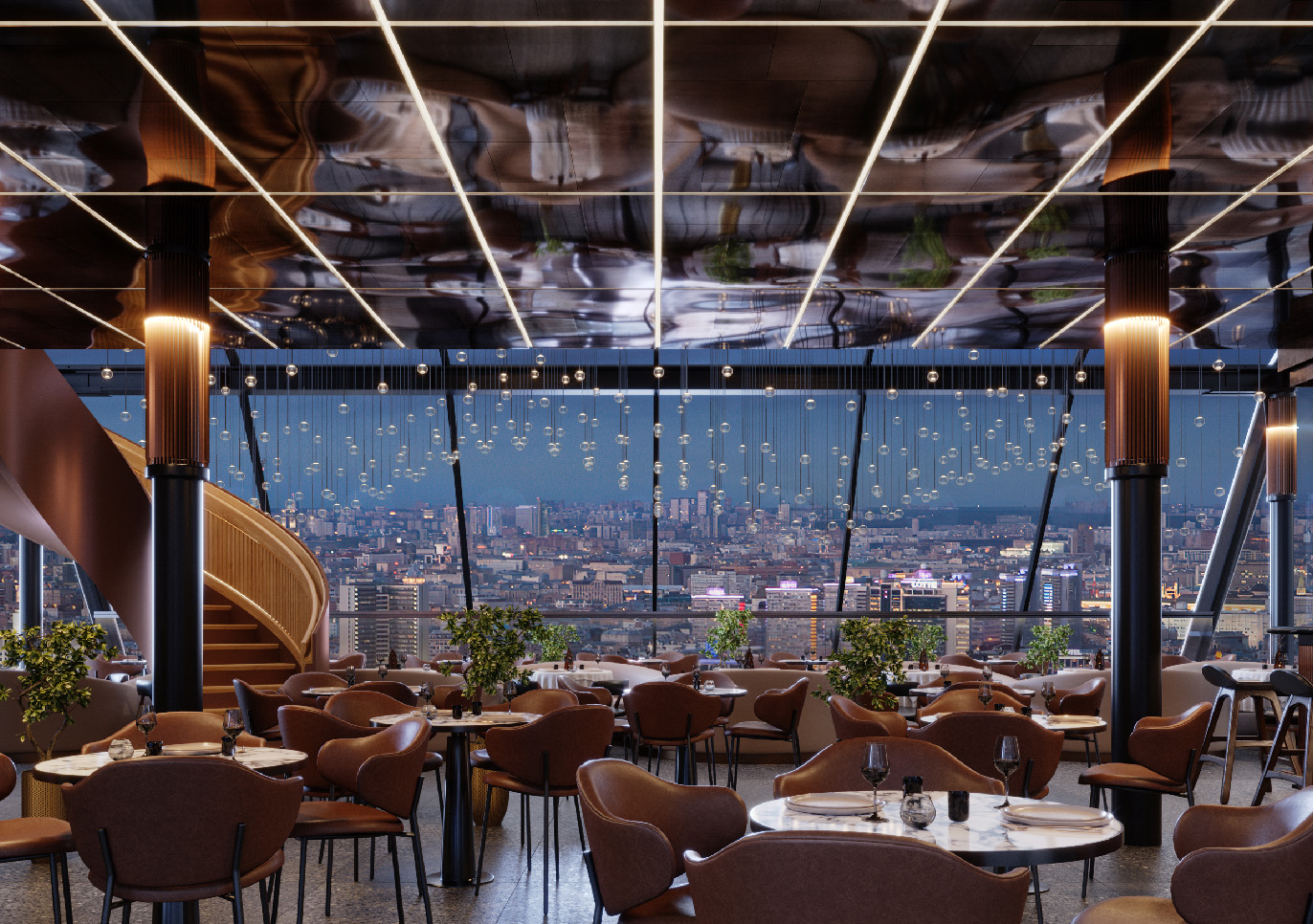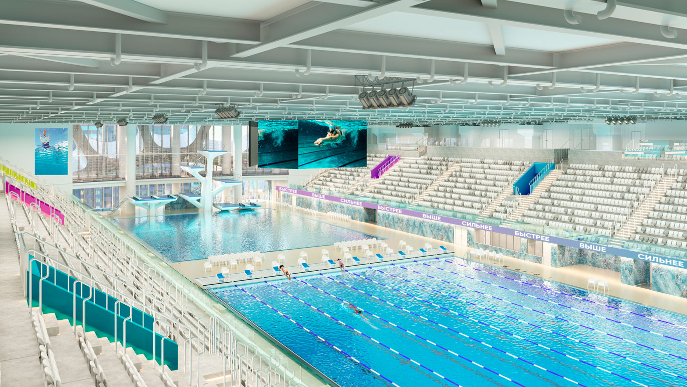 Bird's-eye night view from Olimpiyskiy Prospekt
